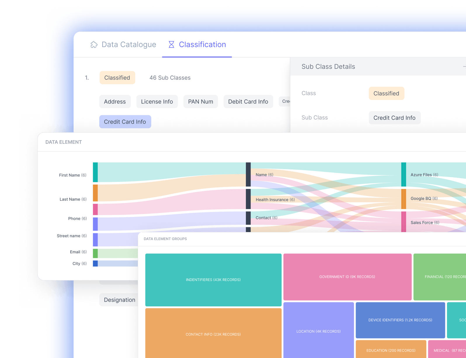 Adaptive’s data discovery and classification module helps classify the ever-increasing amount of enterprise data. Discover sensitive, classified, and systematically important data and organize them based on various data classes for added context. Create your own custom data classifiers in addition to default classifiers for PII, Financial, and PHI data.